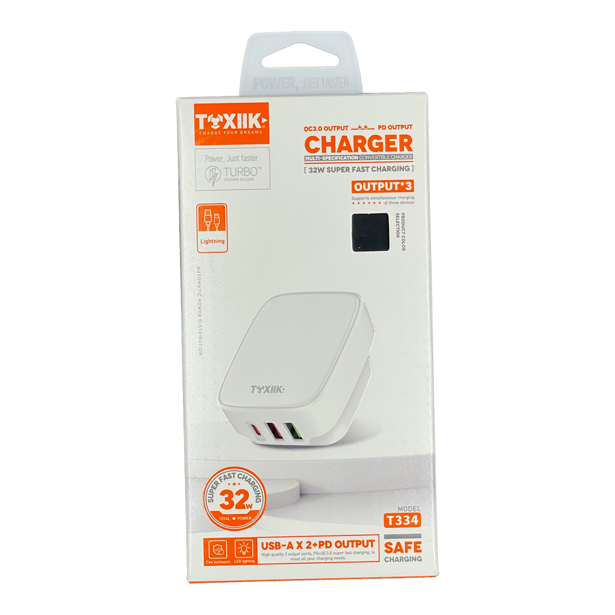 CARGADOR TOXIIK TRIPLE PUERTO TOK-334 / TIPO LIGHTNING ¡Carga Múltiple y Rápida para Todos tus Dispositivos! El Cargador Toxiik Triple Puerto TOK-334 es la solución ideal para cargar múltiples dispositivos simultáneamente con eficiencia y rapidez. Equipado con un puerto Tipo Lightning y puertos USB-A adicionales, es el compañero perfecto para mantener tus smartphones, tabletas y otros gadgets siempre listos, eliminando la necesidad de múltiples adaptadores. Puertos: 1 puerto USB Tipo-C y 2 puertos USB Tipo-A. Potencia de Salida: 32W Voltaje de Entrada: AC 100-240V, 50/60Hz (universal para viajes). Materiales: Carcasa de PC ignífugo para mayor seguridad y durabilidad. Protecciones: Protección contra sobrecarga, sobrecalentamiento, cortocircuito y sobrecorriente. Color: blanco o negro.